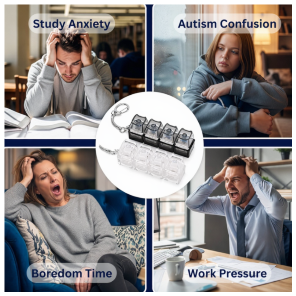 Fidgo is designed to provide a calming, tactile outlet for restless hands. The repetitive mechanical clicks help release nervous energy, making it easier to stay grounded during moments of stress, distraction, or mental overload—whether you’re studying, working, or simply trying to stay focused throughout the day.